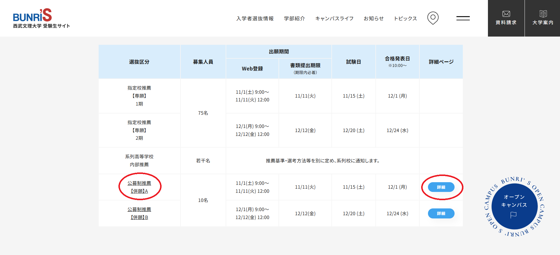 このページでは、各選抜区分の出願期間などのチェック方法などをお伝えします。